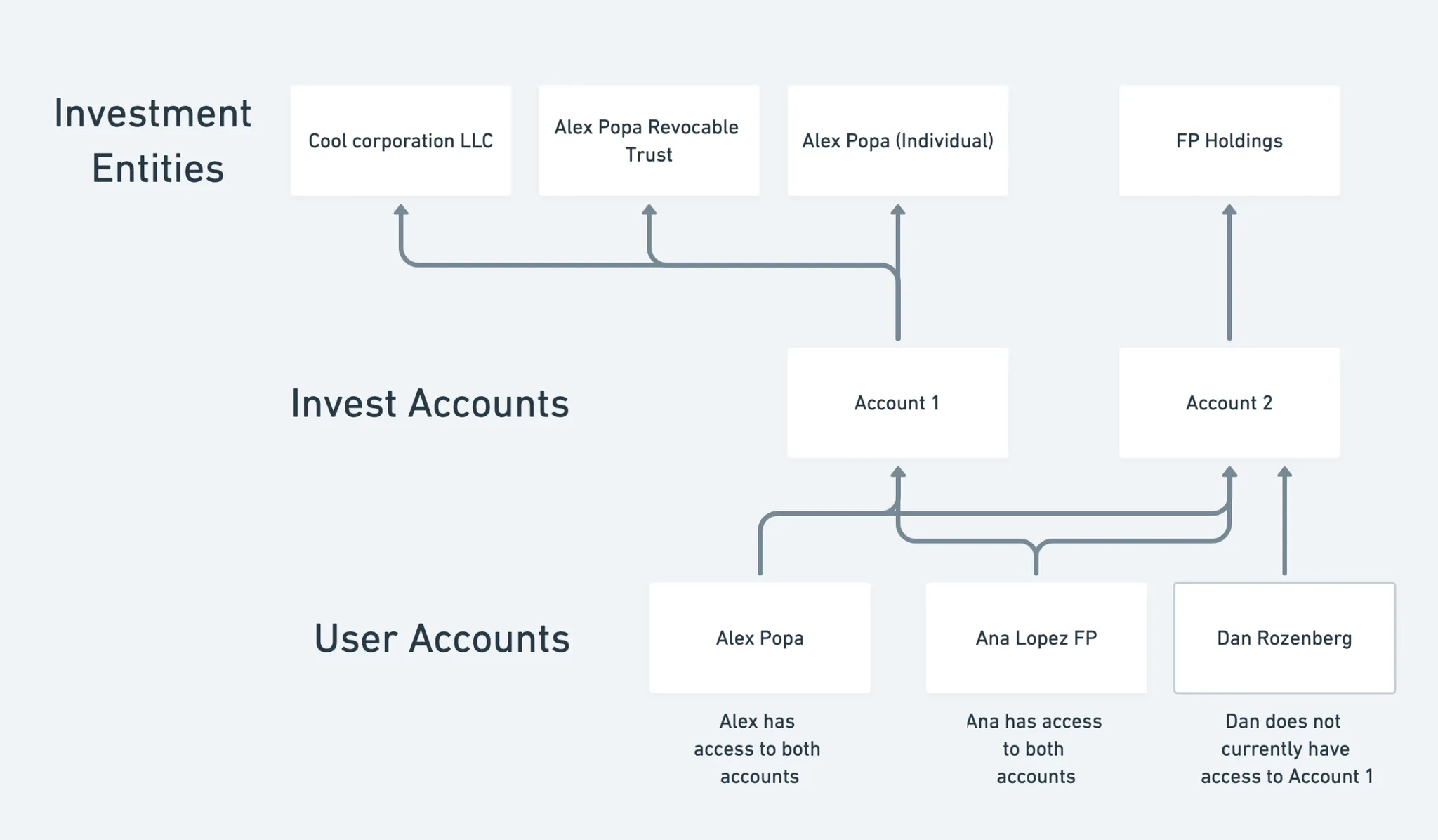 For organizations, we recommend creating an investor account with a shared email (like “ops@firm.com”) and adding individual team members for clarity and better permission control. You can also rename the account (e.g., “Firm Fund I” instead of “Jane Smith”) for easier tracking.
