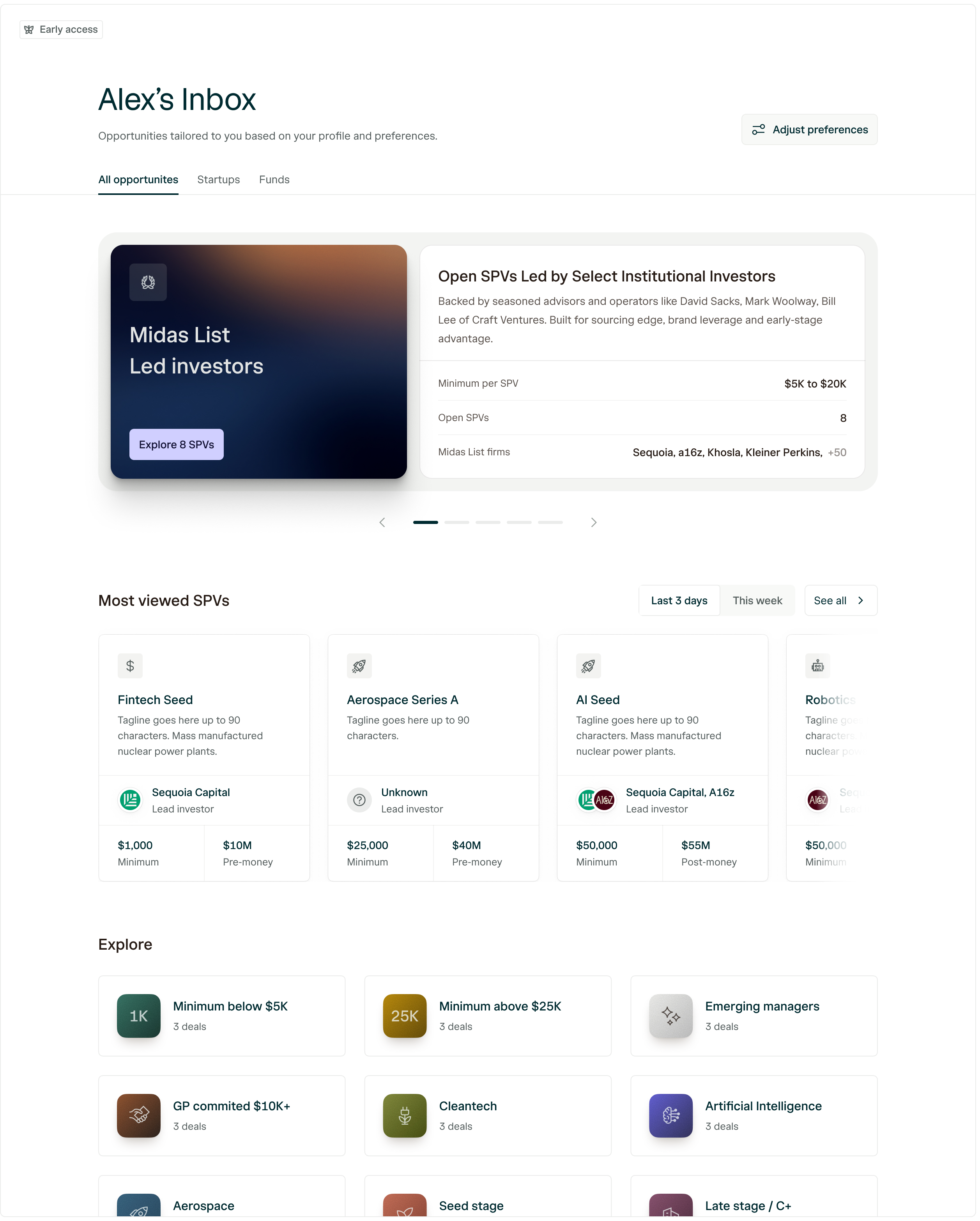 Investors will see opportunities on Meridian in their Inbox. You can configure your opportunity on Meridian to restrict the visibility of specific details until an investor is approved for access.